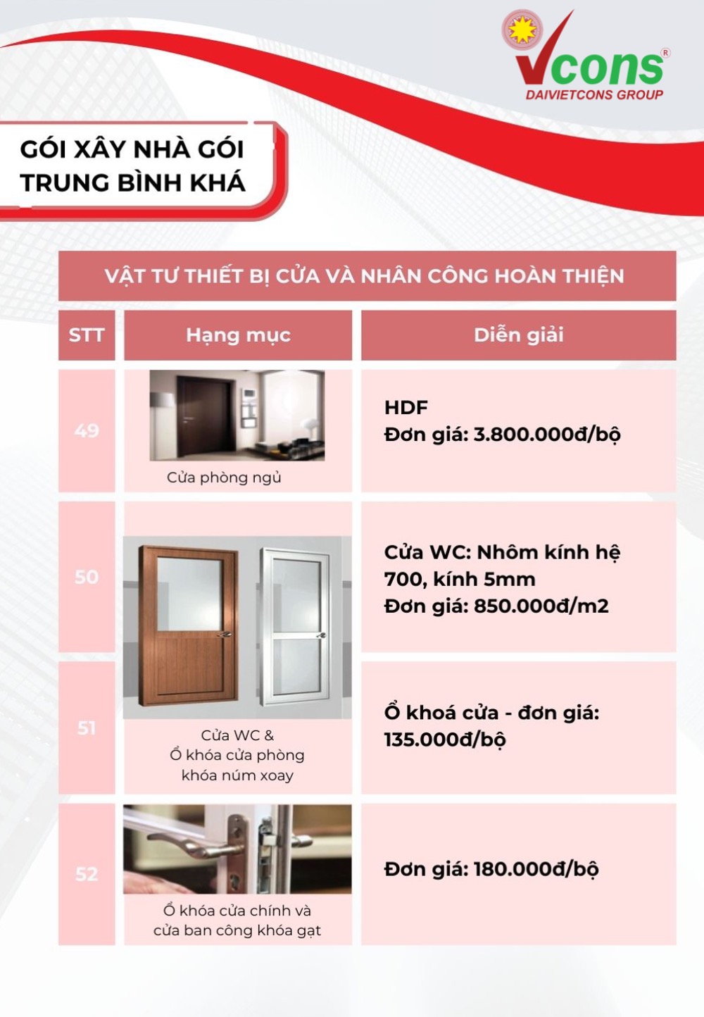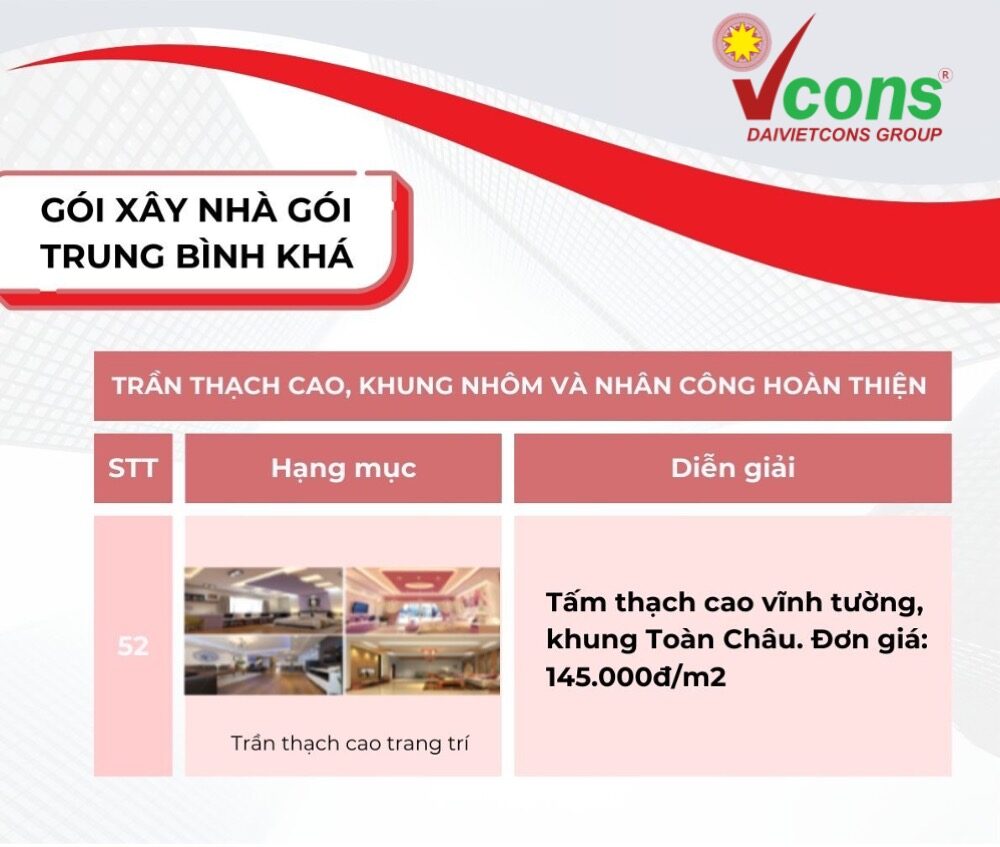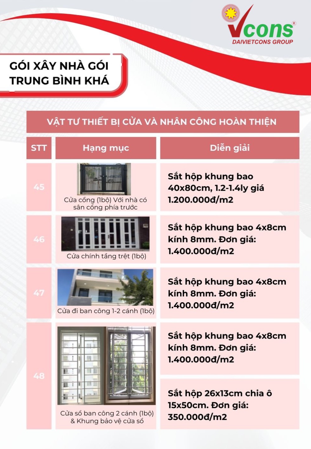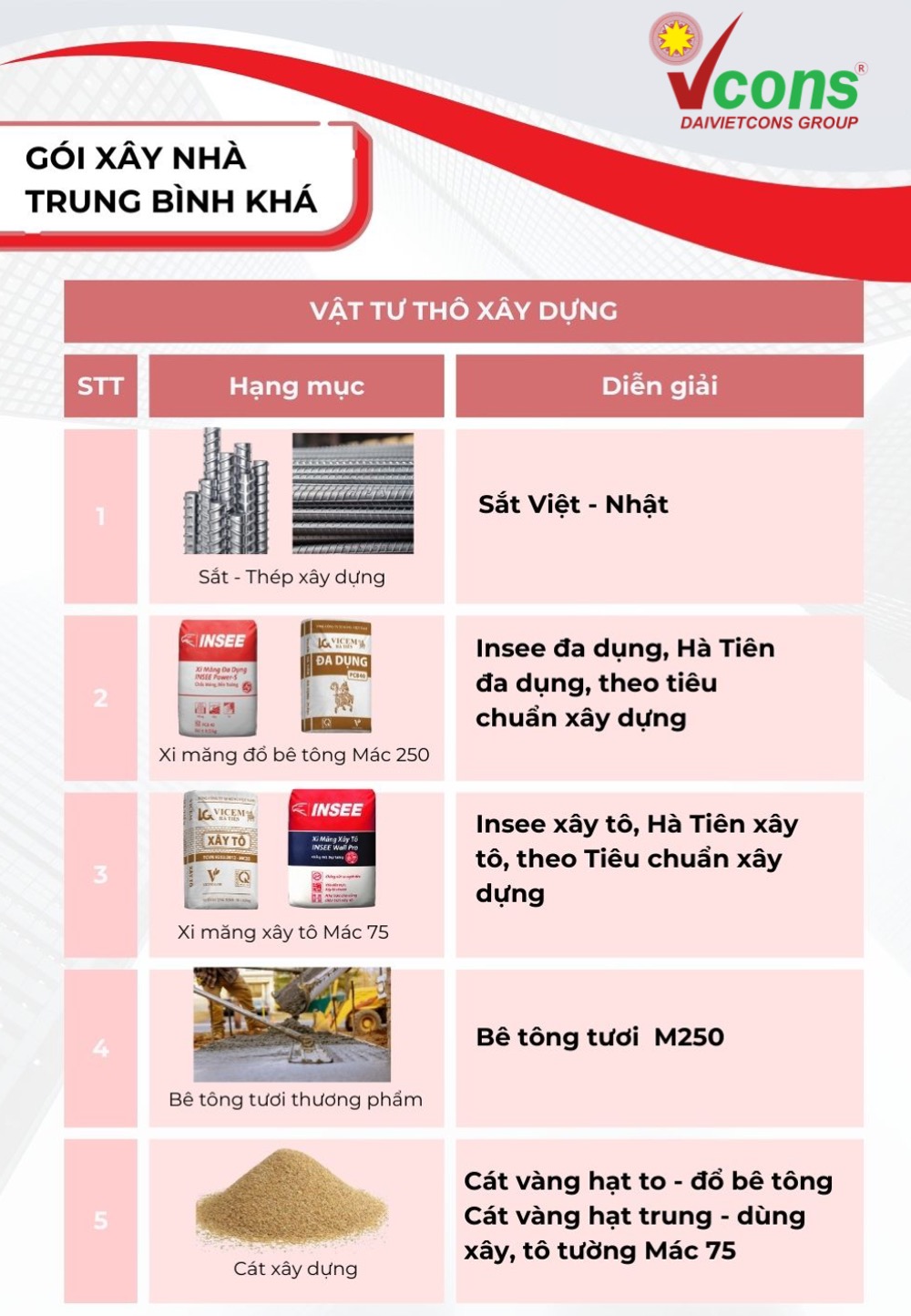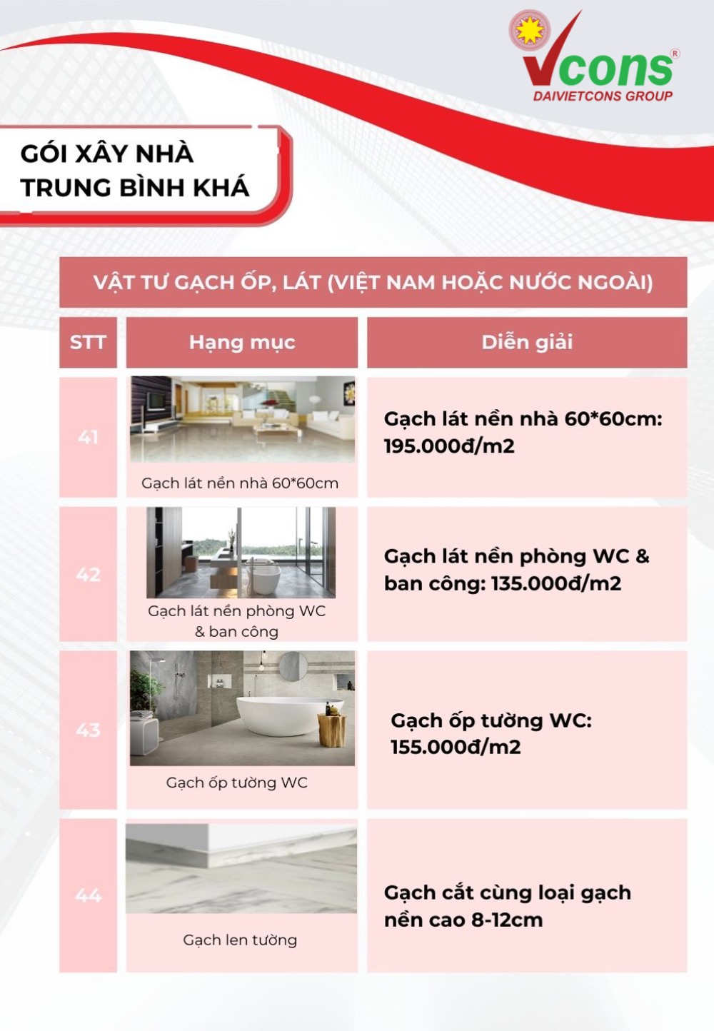 Đại Việt Cons Corporation xin giới thiệu đến quý khách hàng chi tiết báo giá xây dựng hoàn thiện gói Trung Bình Khá tại TP. HCM với chương trình khuyến mãi hấp dẫn năm 2025.